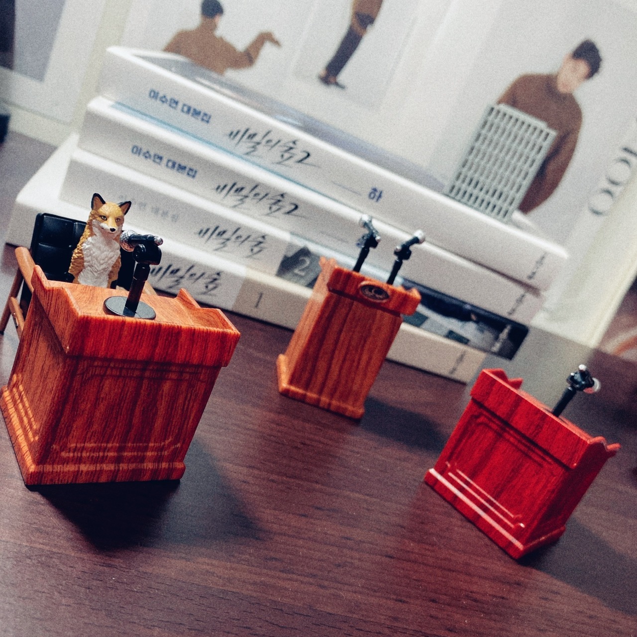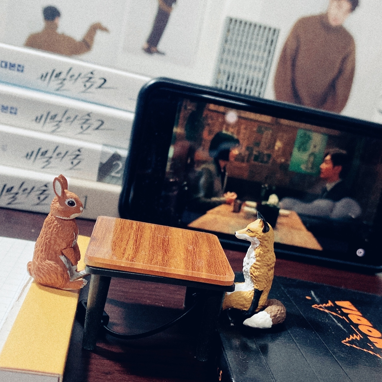 讓狐狸始木墊高的便條紙也是頗高級的 ( 不想擋到背景劇本書的字又想讓後面手機畫面都出現就擋不掉的LOGO )w