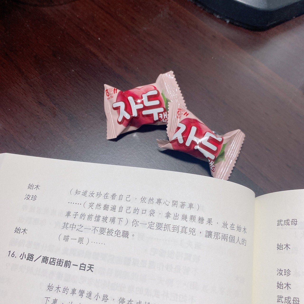 至於這段夢境,就是呼應《我們之間》始木作了個夢。我是一個很容易被刺激作夢的人,比如今天遇到的客人問了很奇妙的問題,通常就會在夢境裡再出現一次,而第二次我的回答就會讓自己笑出來之類的 ( 比如是當時的OS,夢中就會脫口而出 )。汝珍幫始木解夢,回去也作個夢的概念。斧頭掉進湖中的故事,就是在公司突然閃過的念頭,打字的時候突然出現了:『不管是金色的還是銀色的,還給我黃的檢察官就好。』這種想翻自己白眼的搞笑句子w誰叫他黃始木。